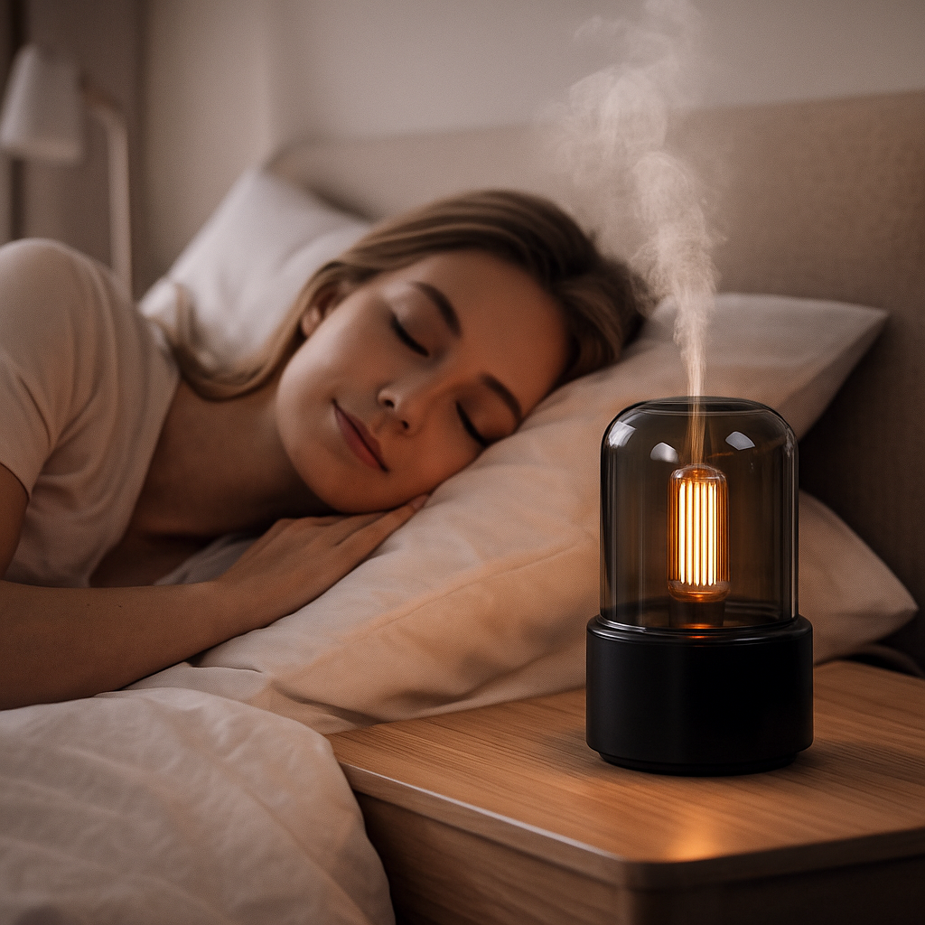 Our diffuser uses ultrasonic atomization to break water into an ultra-fine mist that hydrates your space without heat. Add a few drops of essential oil for natural relaxation, while the soft warm light helps your nervous system unwind and prepares your body for rest.
